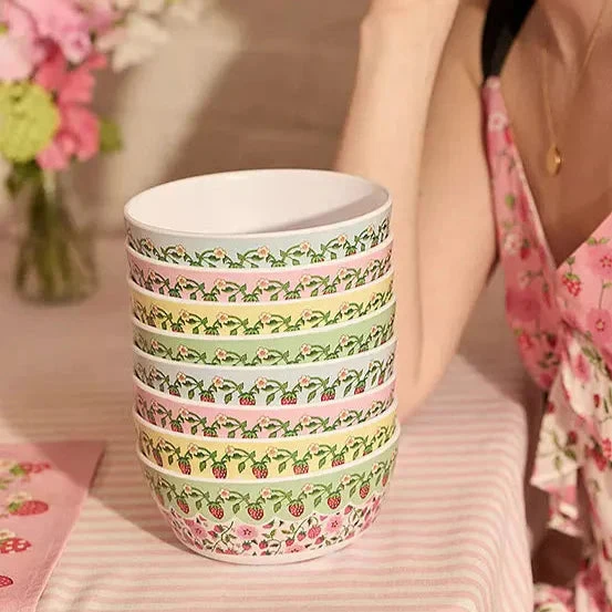 Indulge in the essence of summer with each spoonful thanks to the Cath Kidston Set of 4 Strawberry Melamine Cereal Bowls. Crafted for outdoor enjoyment, these durable bowls come in four lively colors, infusing your gatherings with a burst of vibrancy.