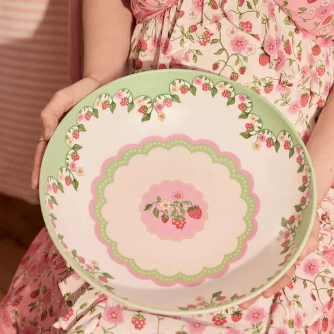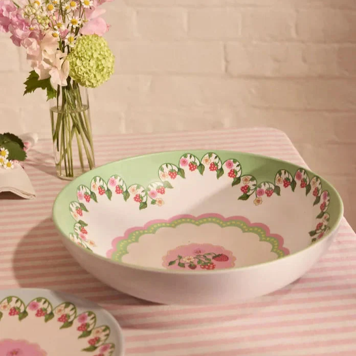 Picnic in style with our lightweight salad bowl and serving spoons decorated our vibrant Strawberry print. Made mostly of sustainable, biodegradable melamine lid it’s not only kinder to the planet but perfect for the outdoors.