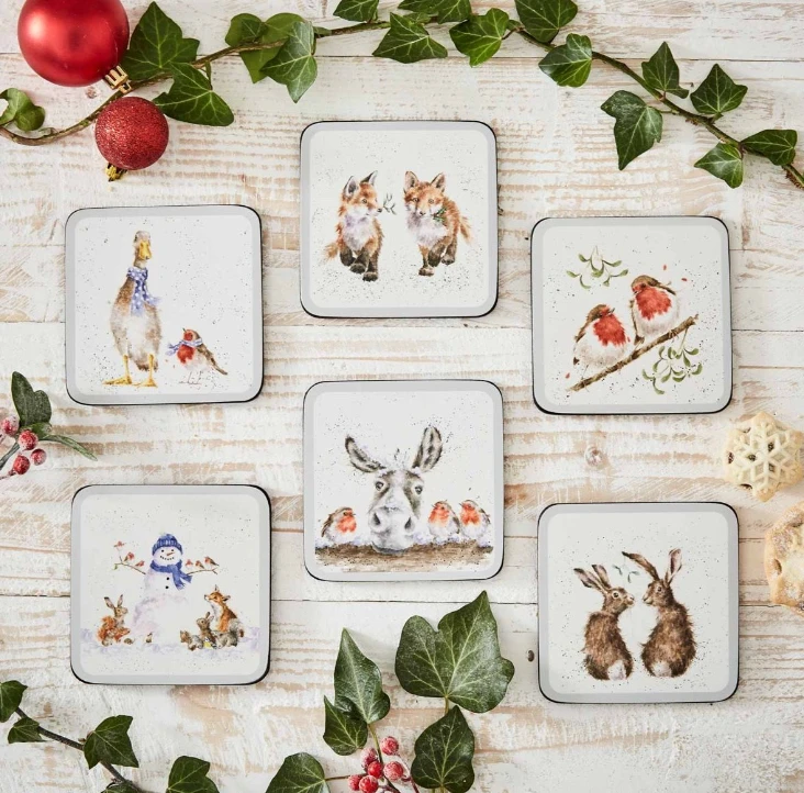 Add a touch of the charming countryside to your home this festive season with this set of 6 Wrendale Designs coasters. Featuring six different illustrations of woodland animals with a Christmas twist, this set is the perfect addition to your home. Cork-backed, these coasters not only look charming, but will help to protect your tabletops from drink spills and heat marks. Match with the Wrendale Designs Christmas Placemats for a delightful collection