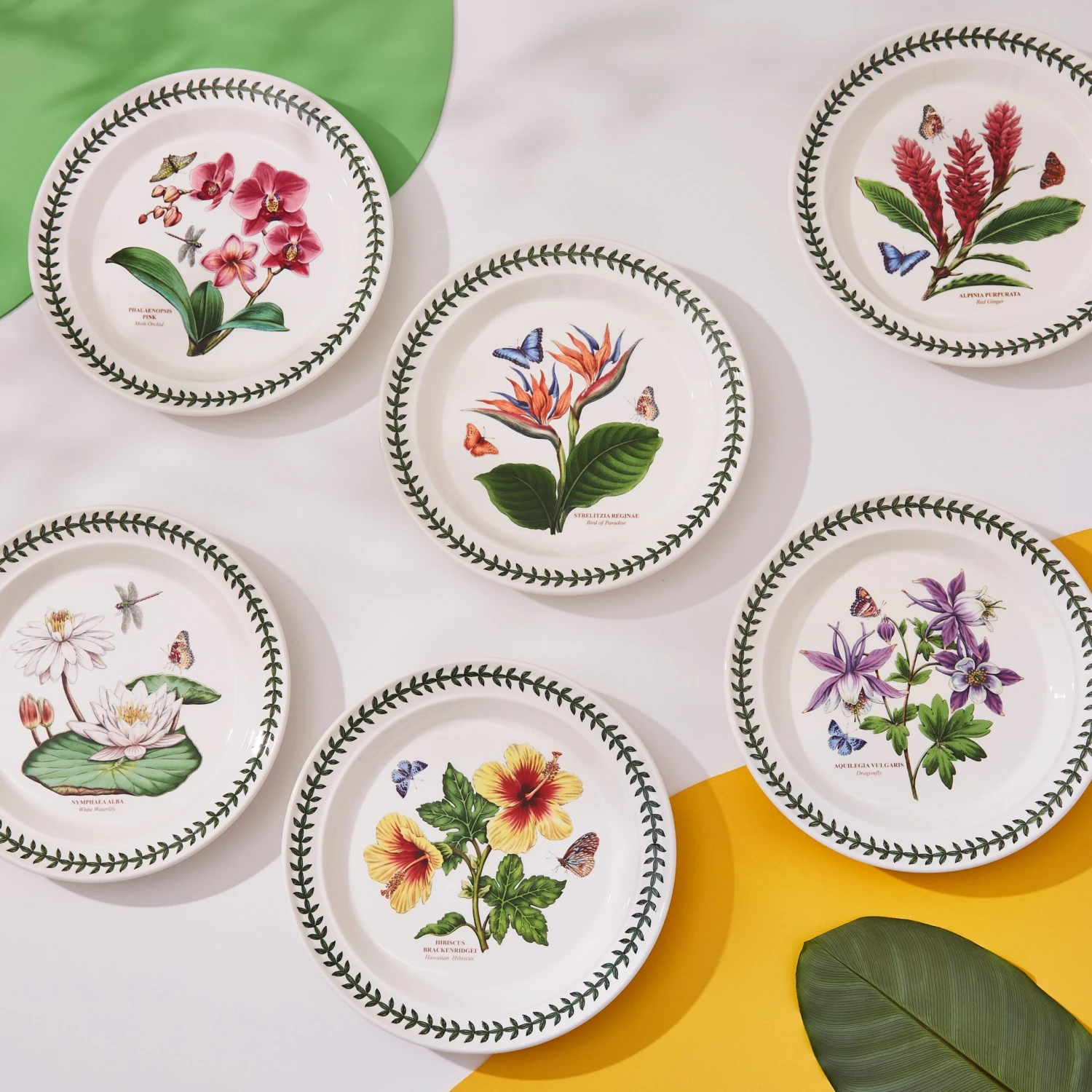 Add an exotic feast of colours to your table with this set of six 26.5cm Exotic Botanic Garden Dinner Plates. The iconic Botanic Garden range has been gracing homes since it was launched in 1972, a true English classic loved by generations. Today its delightful mixture of motifs has been joined by exotic flora and fauna from tropical climates. These plates feature images with bursts of magnificent petals interspersed with delicately detailed butterflies from warmer climates.