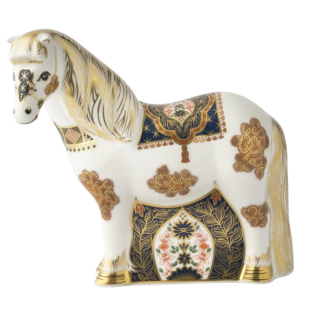 Handcrafted by the artisans at Royal Crown Derby, the Shetland Pony has been designed using the ever-popular but traditional Old Imari pattern embellished in 22 carat gold to reflect all that is on show at Appleby in the county of Westmorland in Cumbria.