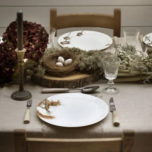 Add a touch of colour to scrumptious family meals with this set of four large dinner plates from Wrendale Designs. Based on original watercolours by Hannah Dale, each plate features its own charming character of British wildlife: a hare cocking its head to listen, a vibrantly coloured duck in mid-waddle, a cheeky squirrel peering over a branch and two small field mice scrambling up a stem. The detailed style perfectly captures the personality of each animal, making these plates ideal for elevating your everyday tableware and bringing a characterful touch to family feasts.