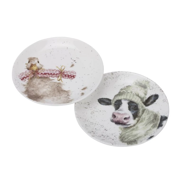 Serve up some Christmas cheer on this charming set of two Wrendale Designs coupe plates. One has a fun illustration of a cow wrapped up warm in woollies, while a duck is pulling a Christmas cracker on the other. The set makes a wonderful gift for friends and family who like to embrace the seasonal spirit. The plates are made from fine bone china, so they look and feel delicate but are durable enough for everyday use. They can conveniently be used in the microwave, then popped in the dishwasher after a festive family feast!