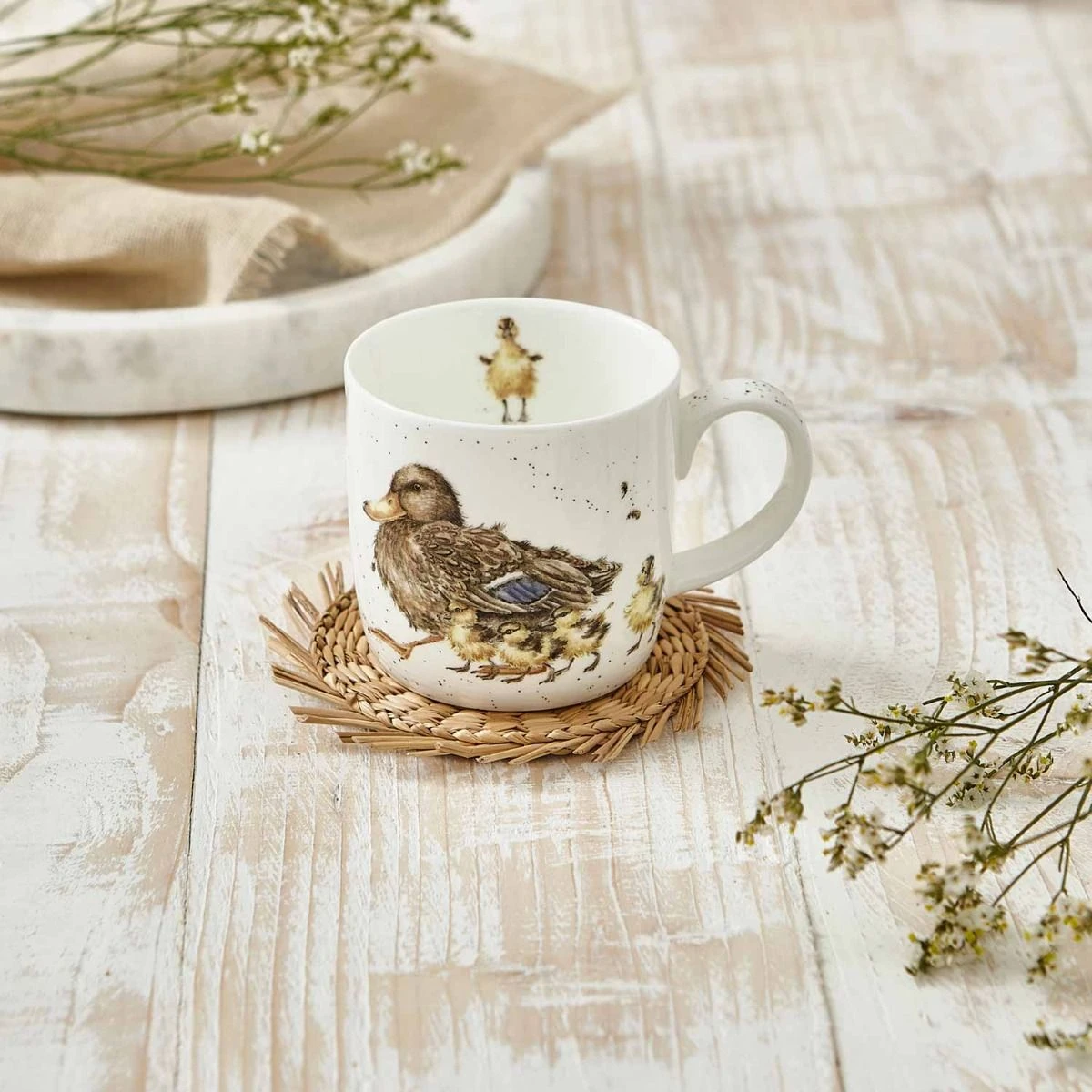 Our Wrendale Designs Room for a Small One Duck Mug will add a charming touch to your kitchen. Featuring a duck with her brood, this beautiful mug is sure to make you smile every time you use it. Made from fine bone china, it is microwave and dishwasher safe, making it perfect for everyday use. Designed by award-winning artist, Hannah Dale, this charming illustration flawlessly captures a special moment between a mother duck and her brood. Perfect to add to your collection, and a wonderful gift.