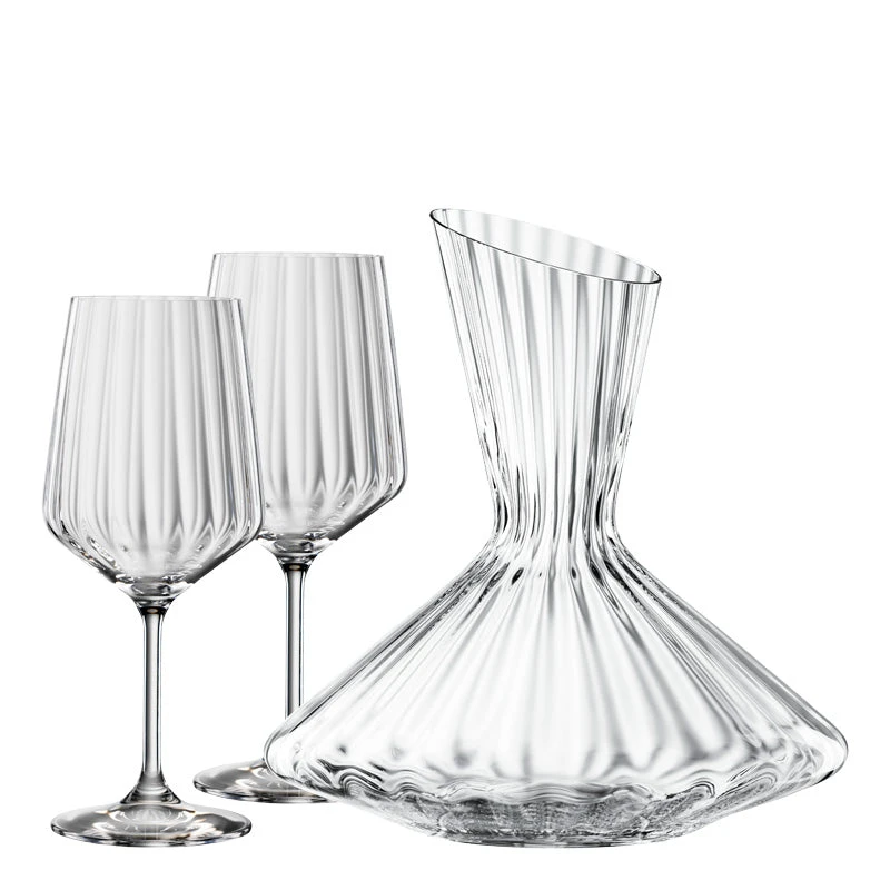 Spiegelau Lifestyle impresses with a smooth wave structure in the glass. The high-quality glasses shine wherever modern lifestyle and zeitgeist meet.