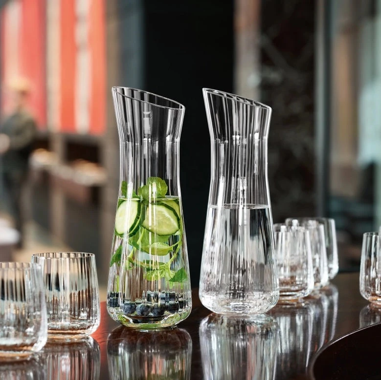 The SPIEGELAU LifeStyle collection is at home wherever lifestyle and fashion meet. Their modern diamond shape is emphasized by the linear decoration. With brilliance and exciting optical effects, the crystal carafe contributes to a high-quality ambiance a a on any dining table.