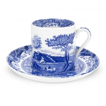 Perfectly sized for a short strong coffee, this coffee cup and saucer is an elegant way to enjoy coffee at any time of day. Combined with other pieces from Spode’s Blue Italian collection it makes for a striking table setting. Blue Italian was first produced in 1816, and has become an icon of British design. Yet despite this impressive heritage this coffee cup and saucer is microwave and dishwasher safe.