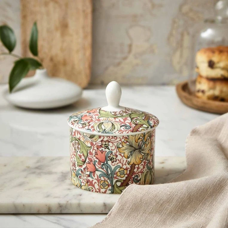 Make your afternoon tea that little bit sweeter with this beautiful Morris & Co. Golden Lily Sugar Bowl with Lid. Featuring Morris & Co.’s iconic Golden Lily design, this porcelain sugar bowl will add a beautiful, botanic touch to your kitchen. Designed by J.H. Dearle in 1899, this striking design features pretty lilies and blooms that are reminiscent of a traditional English country garden. To celebrate the 160th anniversary of Morris & Co., this pastel collection is the perfect addition to your spring/summer kitchenware. So whether you add it to your existing afternoon tea set, or give it to a loved one as a gift – our gorgeous Golden Lily Sugar Bowl with Lid is sure to go down a treat.