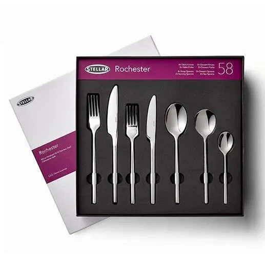 Rochester cutlery boasts an unmistakeably modern silhouette and is made to last a lifetime. Crafted from premium stainless steel, the comprehensive collection adds unfaltering style to any dining table.